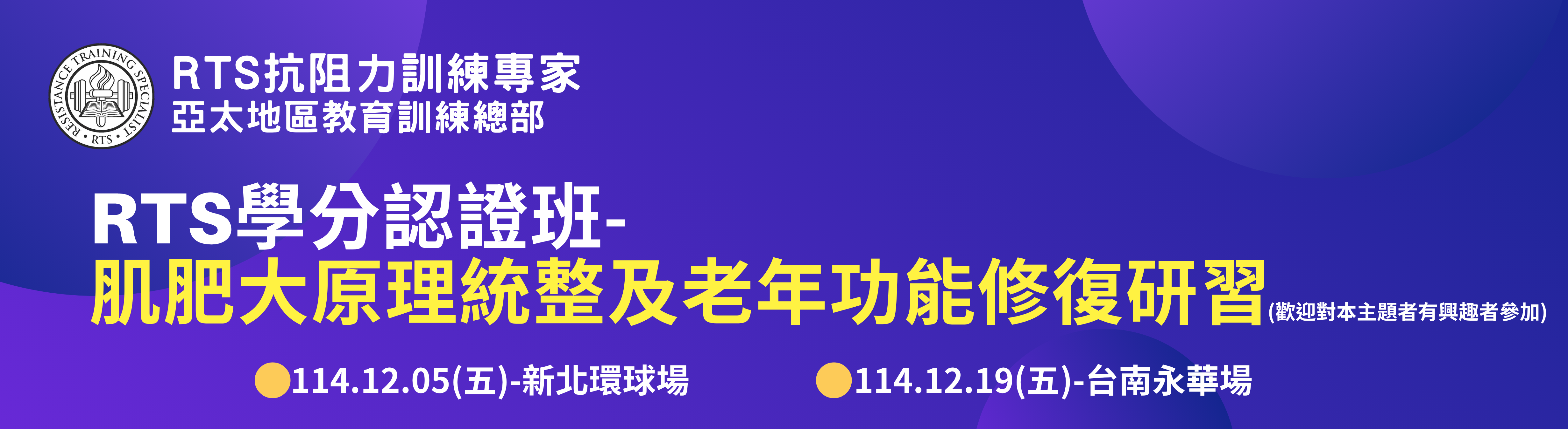 RTS認證課程可幫助您加強運動訓練從業人員所必備的專業知識與技能和科學健身訓練的核心觀念。完整的培訓教學計畫,將協助您在教學過程中以安全有效的方式指導學員完成正確的訓練。 -